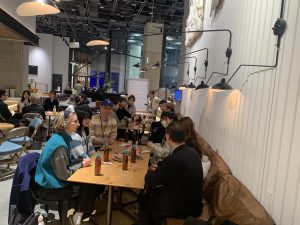 また、あるチームでは「旅行好き」という共通点をきっかけに、これまで訪れた国の話や旅の思い出などが共有されました。第二部のワールドマップ・アクティビティでは、参加者が自分の出身国・出身地を地図上にマークし、そこから文化や価値観の話へと自然に会話が広がっていきました。さらに「ビジネス」をテーマにしたセッションでは、日頃取り組んでいる仕事内容やキャリアについての共有が行われ、日本にも支店を持つ電子機器メーカーに勤める方、韓国で美術を教えている方、台湾で物理学を学ぶ学生など、参加者のバックグラウンドは多様で、異なる視点から意見交換が活発に行われました。